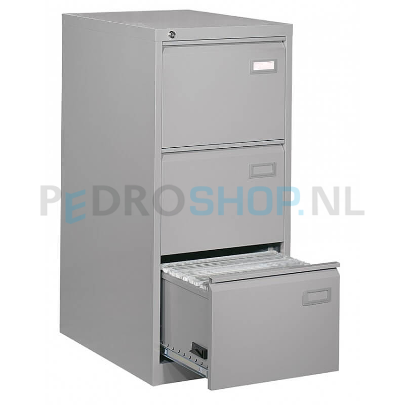 Deze dossierkast kent 3 laden en is geschikt voor zowel A4 als folio hangmappen; dit is eenvoudig in te stellen middels een verstelbaar binnenwerk.
