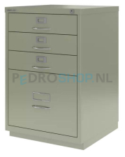 Ladenkast Bisley F-serie voor opbergen hangmappen en andere materialen, 4 laden, betongrijs