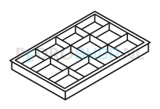 Deze inzetbak kent 12 gelijke vakken. De inzetbakken worden per set van 5 stuks verkocht. Deze 12-vaks inzetbakken kennen een hoogte van 8,3 cm en zijn geschikt voor de Bisley A3 meerladenkasten.